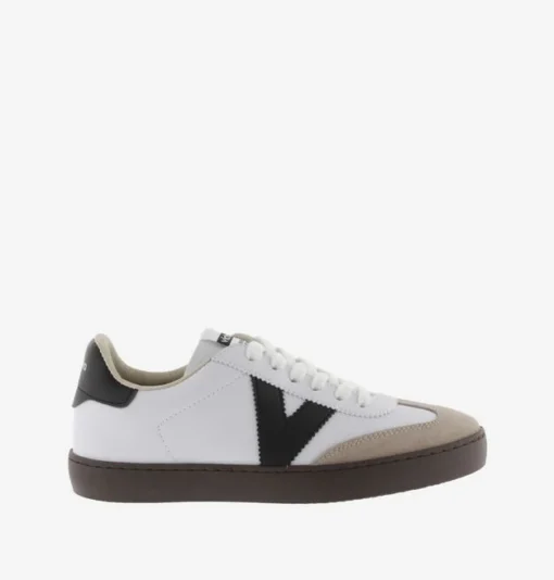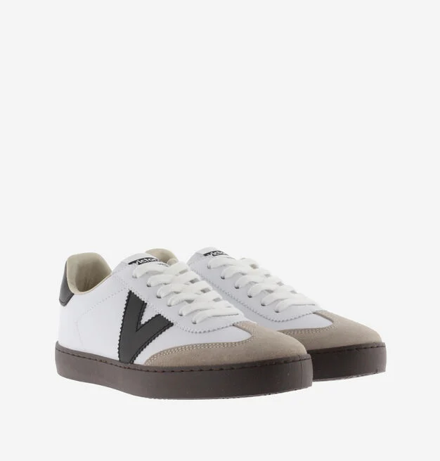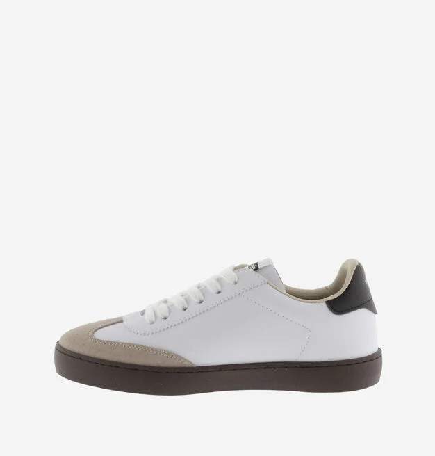 Baskets unisexes fabriquées en Espagne en matériau effet cuir marron et chocolat.