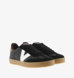 Baskets pour femme fabriquées en Espagne en paillettes texturé et pièces en croûte de cuir