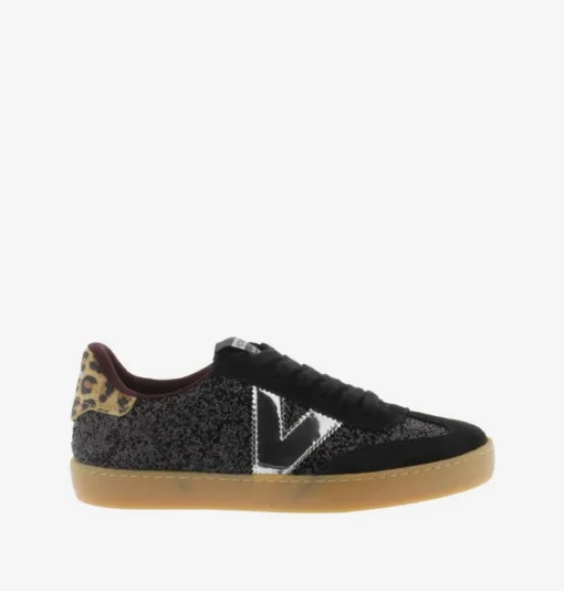 Baskets pour femme fabriquées en Espagne en paillettes texturé et pièces en croûte de cuir