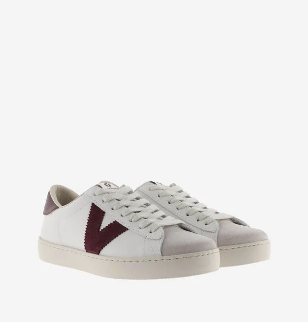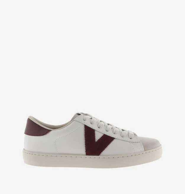 Baskets blanches et bordeaux unisexes fabriquées en Espagne en cuir souple de haute qualité
