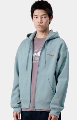 La veste à capuche ‘American Script’ couleur citadel, est confectionnée en tissu polyester-coton épais qui a été brossé pour un rendu molletonné. De coupe loose, elle présente une fermeture zippée avant et une poche kangourou. Sa capuche est ajustable Le logo bicolore American Script est brodé sur la poitrine.