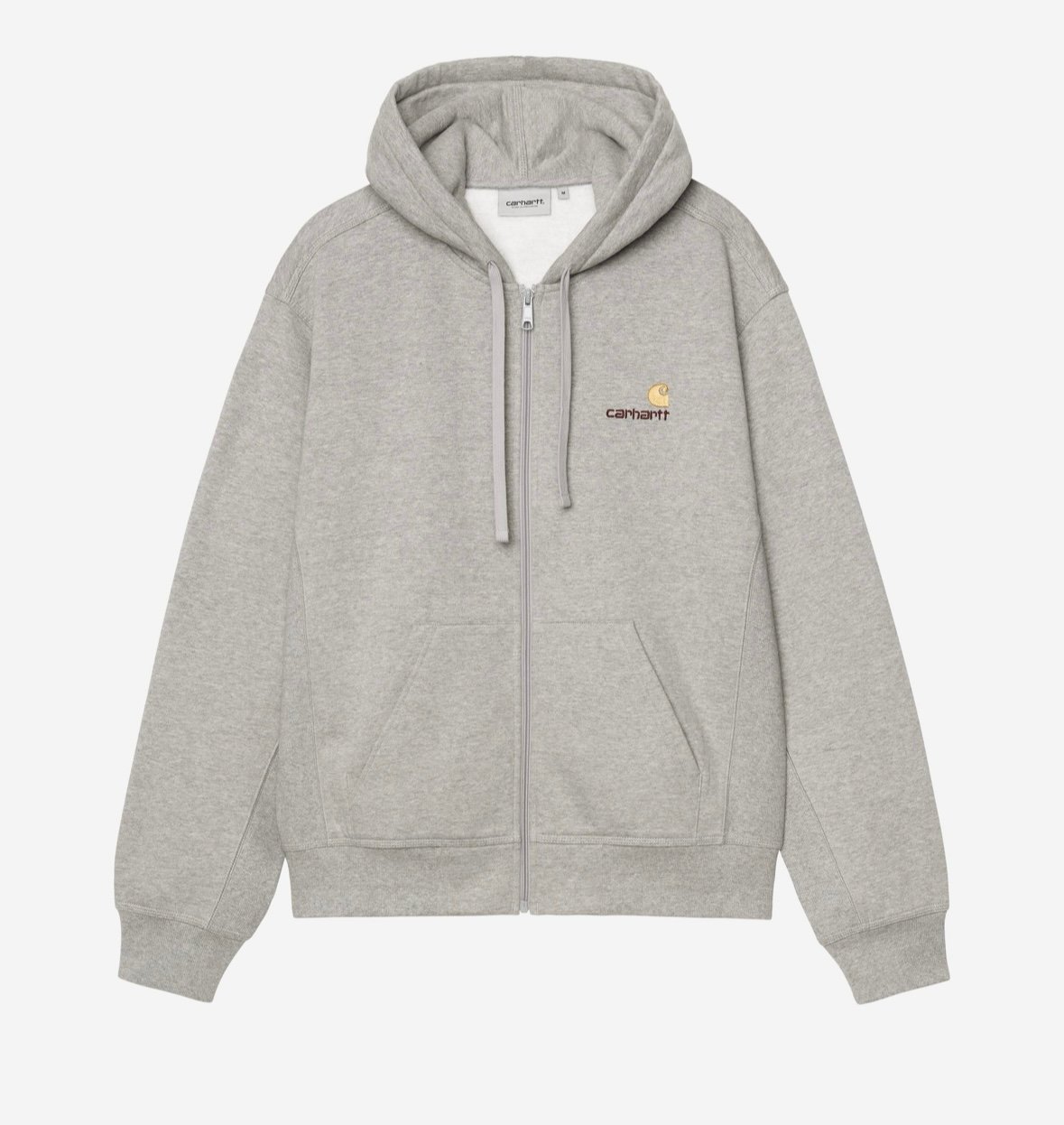 La veste à capuche ‘American Script’ est confectionnée en tissu polyester-coton épais qui a été brossé pour un rendu molletonné. De coupe loose, elle présente une capuche ajustable, une fermeture zippée avant et une poche kangourou séparée en deux. Le logo bicolore American Script est brodé sur la poitrine.