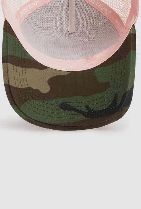 – Patch logo Sweet Pants sur le devant avec tranche visière effet « destroy » et tissu envers visière imprimé camouflage